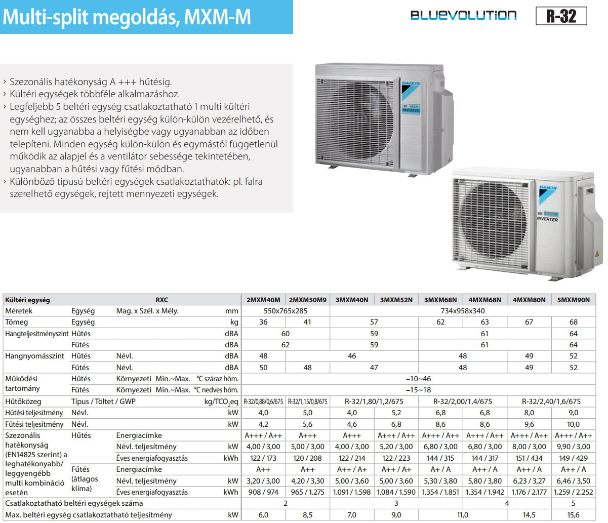 A Daikin 3MXM40A8 Multi klíma kültéri egység (max. 3 beltéri egységhez) fontos tulajdonságai: