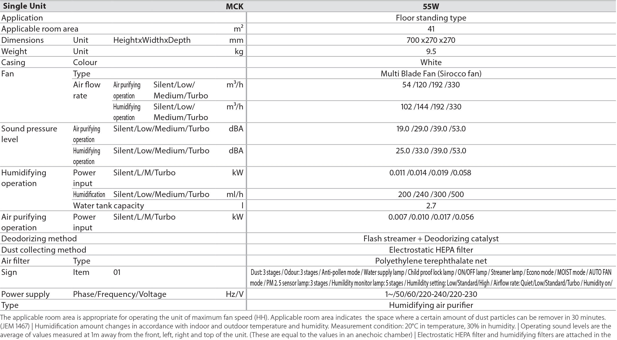 A Daikin MCK55W párásító-légtisztító készülék fontos tulajdonságai: