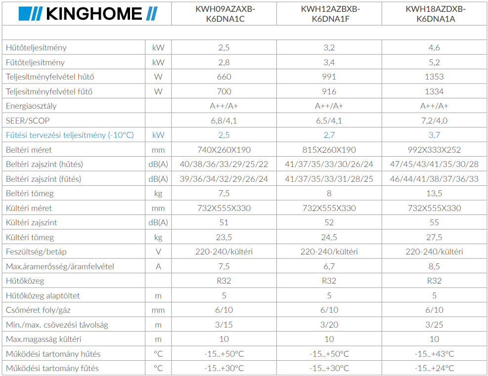 A Kinghome KWH09AZAXB-K6DNA1C Primor Inverteres Split klíma fontos tulajdonságai: