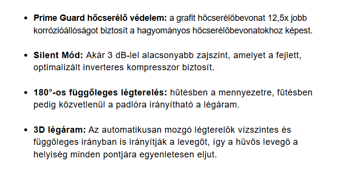 A Midea LUN-18-SP Solunar Inverteres Split klíma fontos tulajdonságai:
